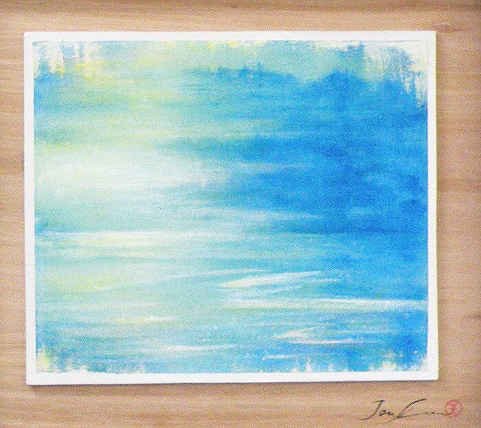「湖畔の朝」 自然素材:麻布(キャンバスの裏)・アクリル絵の具