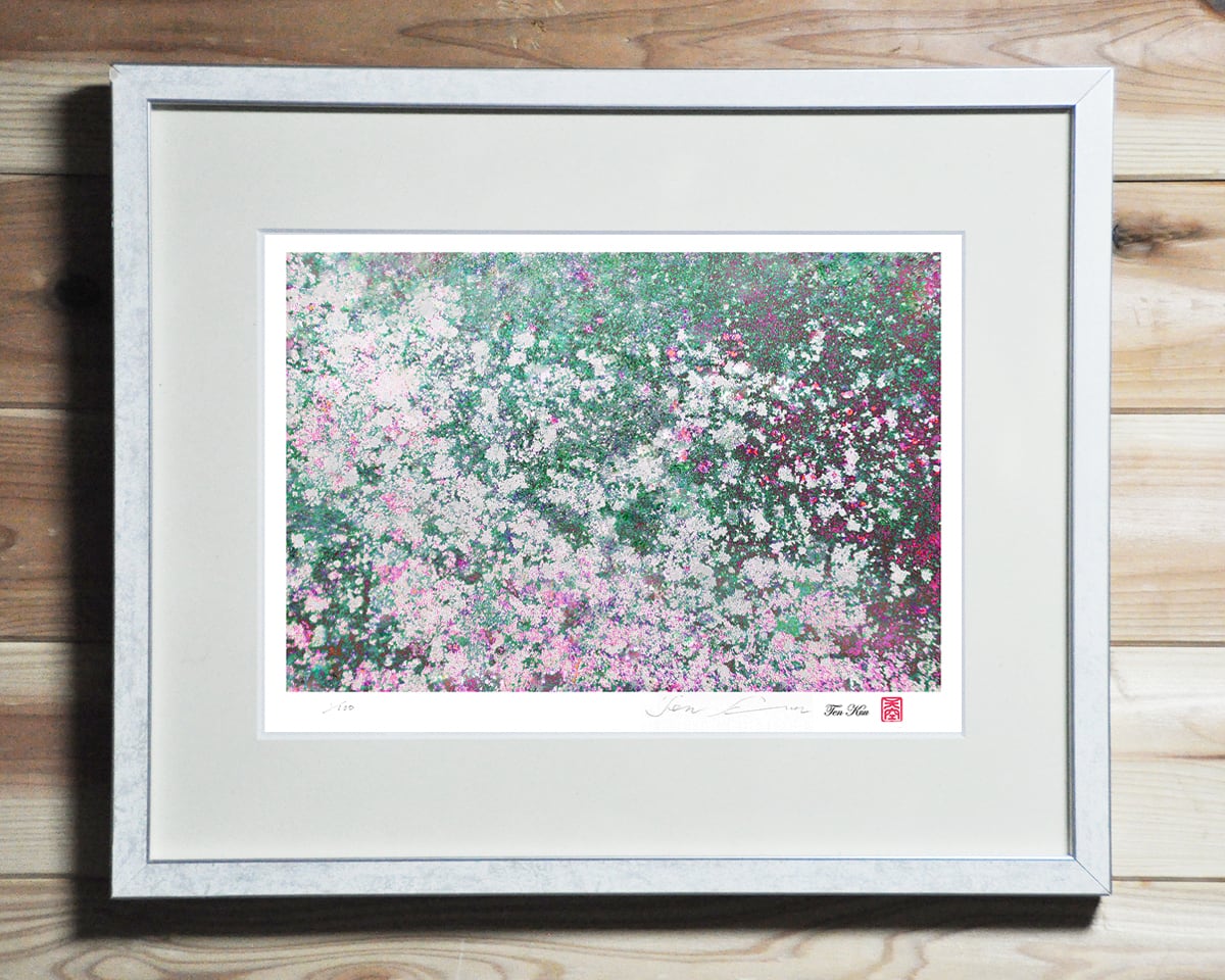 錆びた鉄板のシミから、春の訪れを感じさせる桜が咲く景色につくり変えました。世界に一つしかない貴重な作品です。サインを入れ100枚限定でお届けします。